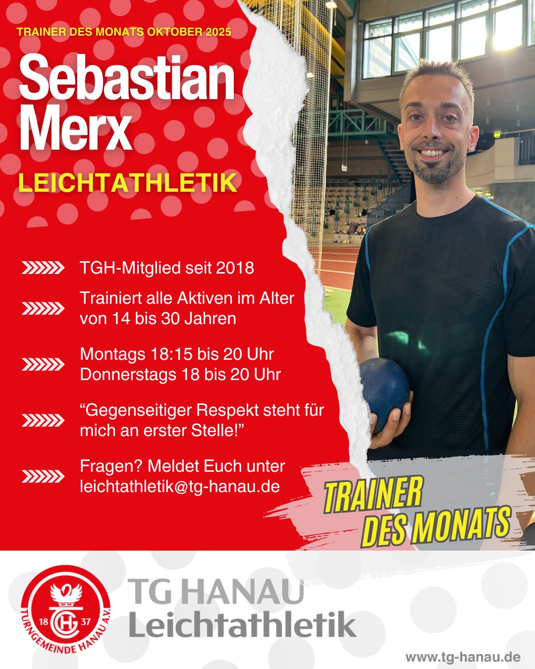 Haben wir dein Interesse an Leichtathletik geweckt? Dann melde dich gerne direkt per Mail bei Sebastian: leichtathletik@tg-hanau.de ✉️