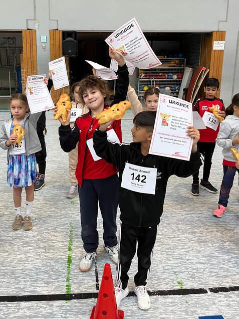 Die Bedingungen in der Halle waren zwar recht eisig, doch davon ließen sich die Kinder nicht beirren. Trotz der Kälte hatten alle viel Spaß an den abwechslungsreichen Disziplinen und zeigten großen Einsatz. Als kleine Belohnung für ihre tollen Leistungen und die starke Gemeinschaft erhielt jedes Kind zum Abschluss einen Weckmann - ein gelungener und süßer Abschluss eines sportlichen Tages.