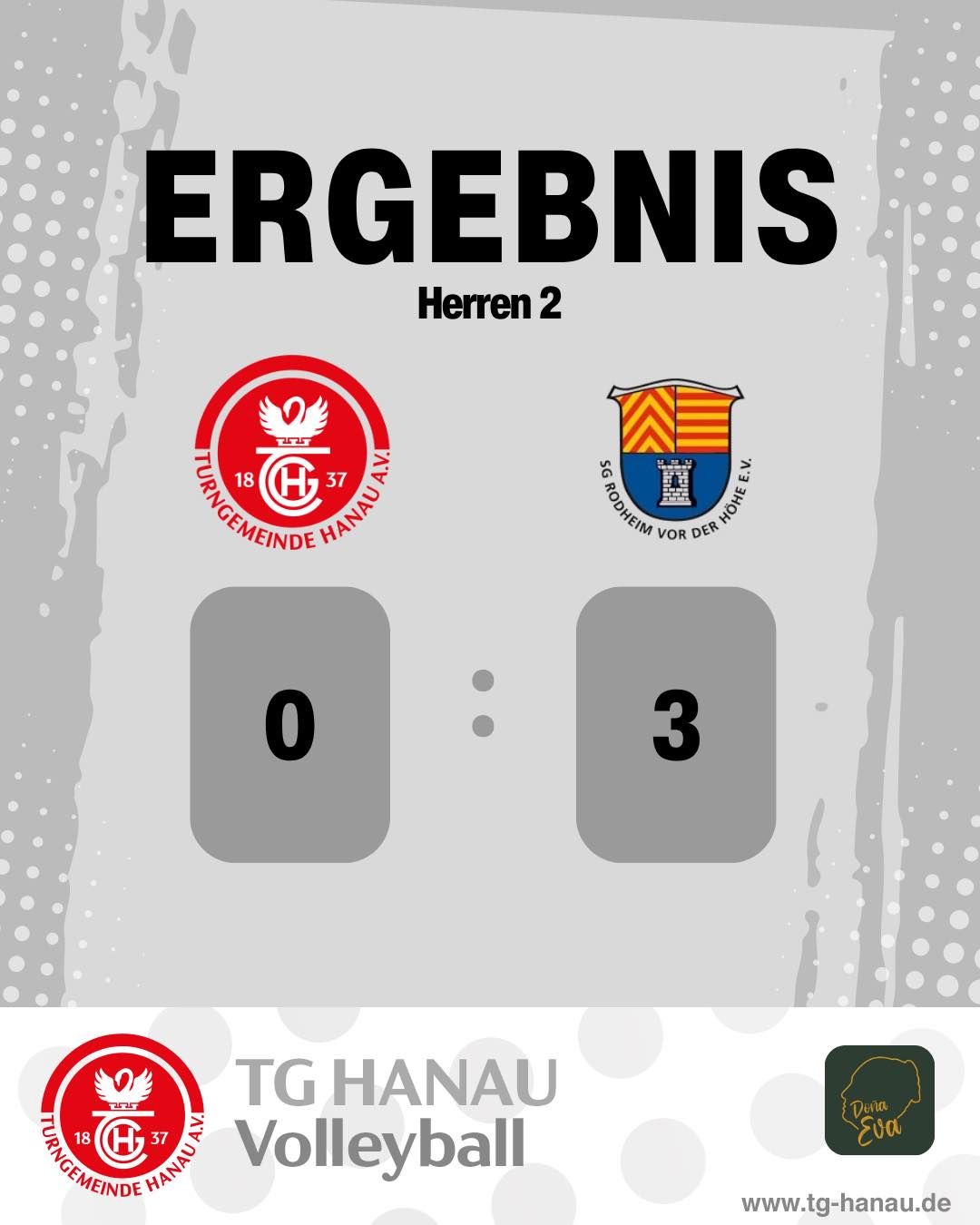 Trotz langer Führung im 1. Satz war die Mannschaft im entscheidenden Moment nicht im der Lage, den Sack dicht zu machen. Enttäuscht vom Ausgang des 1. Satzes, geriet die Mannschaft dann früh in Rückstand. Trotz fokusierter Phasen nahmen die Eigenfehler zu, und der Gegner konnte Aufspielen, sodass Satz 2 ebenfalls an die Gastgeber ging. Obwohl die Mannschaft im 3. Satz lange Schritt halten konnte, beendete der Gastgeber aus Rodheim das Spiel mit einer souveränen Aufschlagsserie.